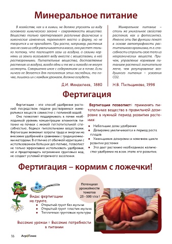 В хозяйстве, как и в химии, не должно упускать из виду Минеральное питание –