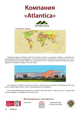 скохозяйственных культур. Работая на протяжении 28 лет компания «Atlantica Agricola» имеет