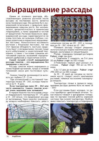 мированной рассады характеризуются не