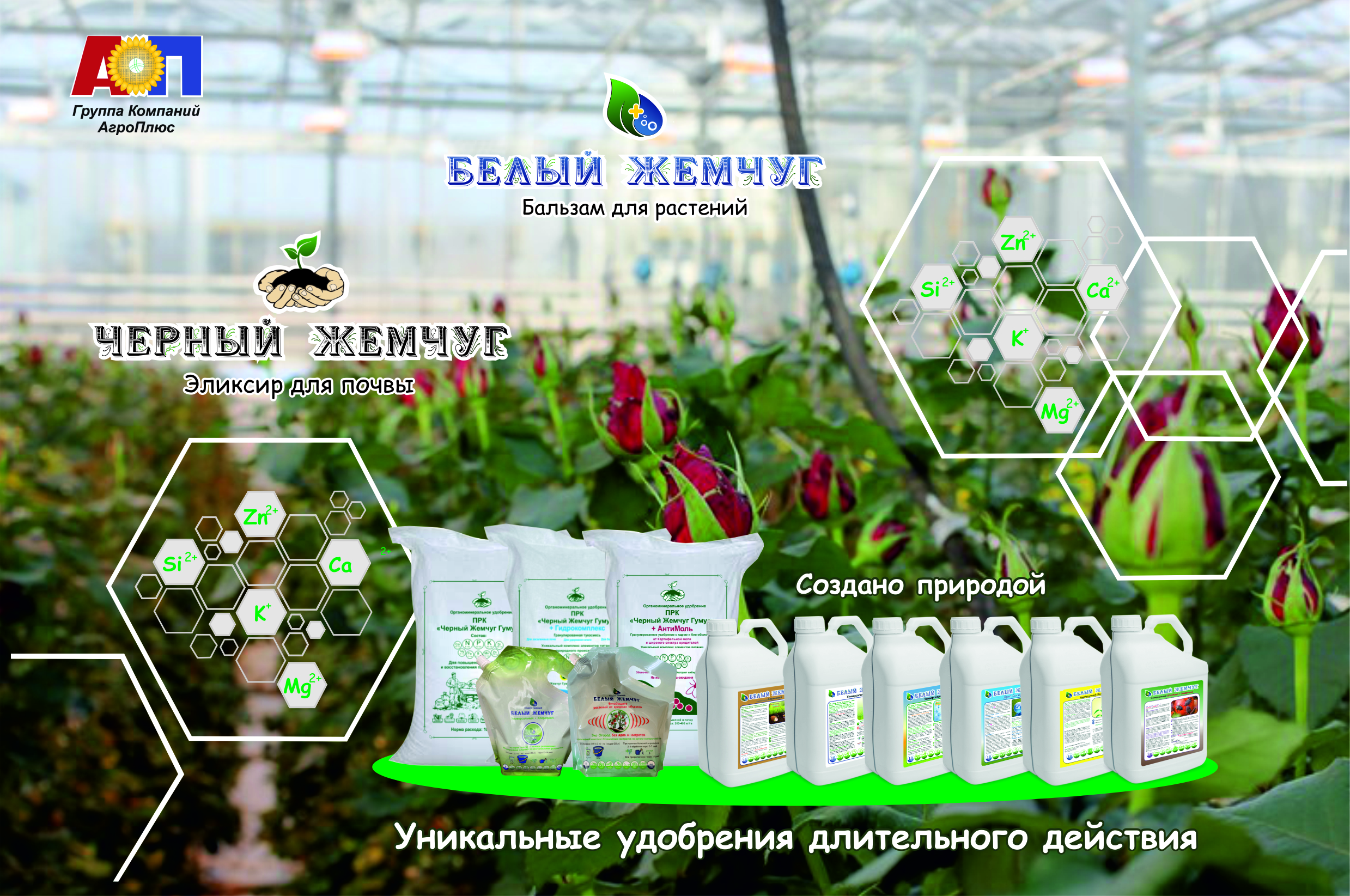 • ПРК «Белый Жемчуг Дрип Са+ Mg» — обеспечивает быстрое поступление биодоступного кальция и магния, необходимых для высокой прочности клеток, стебля. Способствует формированию крупного, ярко окрашенного цветка. Обеспечивает длительный товарный вид после срезки.
