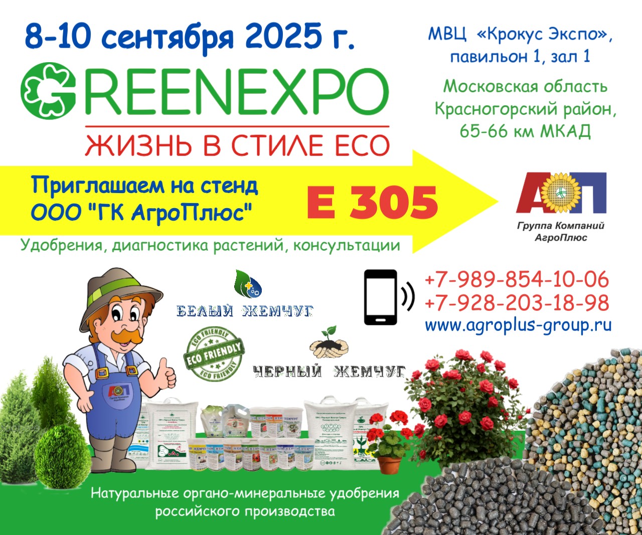 • С 8 по 10 сентября мы будем участвовать в выставке-форуме «ГринЭкспо. Жизнь в стиле Eco» дляпроизводителей и потребителей ECO товаров и услуг в рамках международной выставки «Цветы Экспо» в г. Москва, МВЦ «КрокусЭкспо». Павильон 1, зал 1, стенд Е 305. Это отличная возможность узнать о новых экологичных решениях для выращивания декоративных, овощных и плодово-ягодных культур в личных приусадебных хозяйствах.