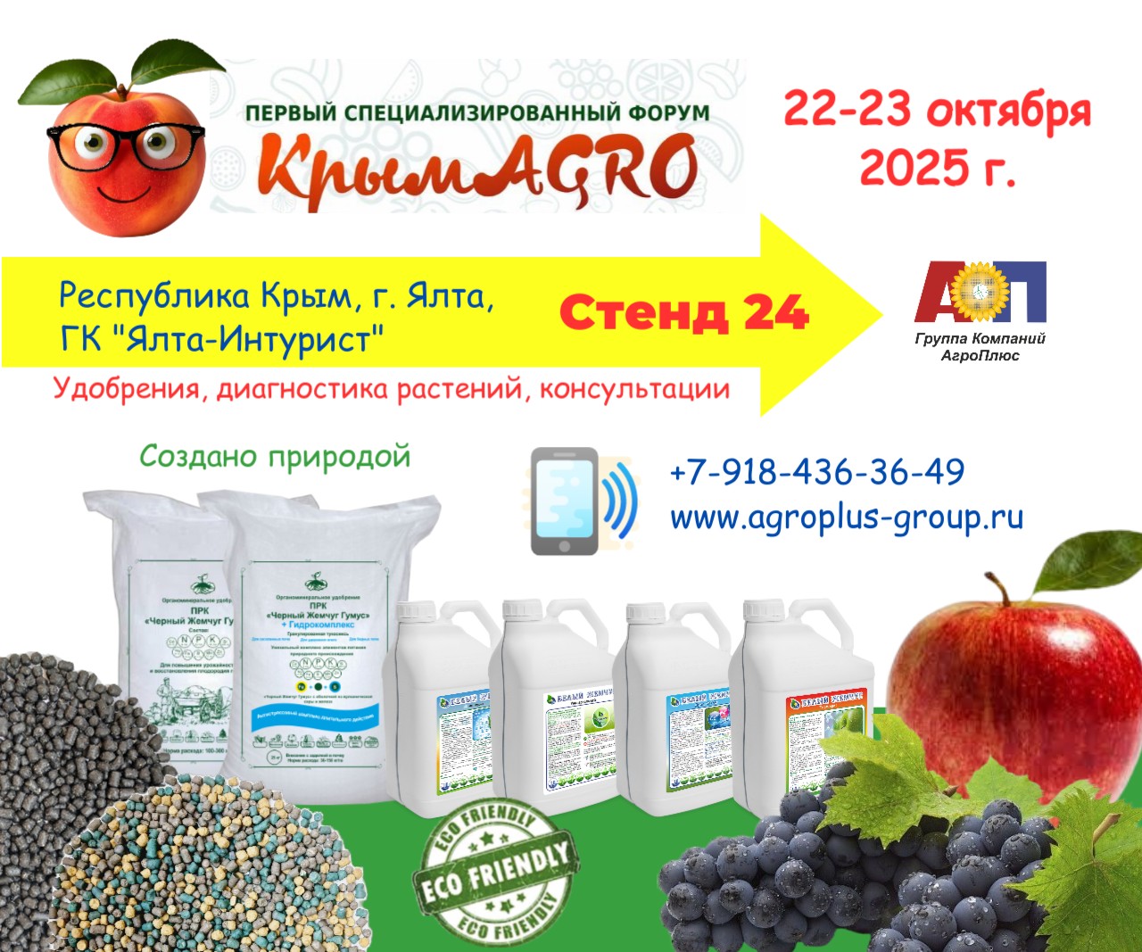 • С 22 по 23 октября мы также будем присутствовать на выставке-форуме «КрымАгро»в Ялте, ГК «Ялта-Интурист», стенд 24. На стенде и во время презентации расскажем Вам о результатах применения наших удобрений в промышленных садах и виноградниках. В том числе по актуальной для этого года теме по защите многолетних плодовых от заморозков.