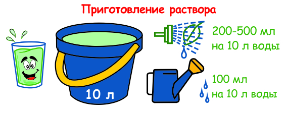 2) Полив под корень 1,0%-ным раствором (100 мл на 10 л воды) через 14-30 дней.