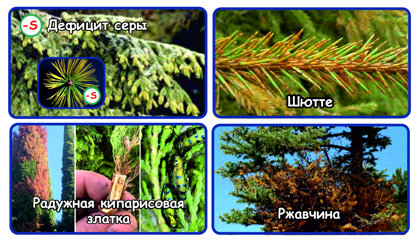 Уязвимость: На фоне дефицита серосодержащих веществ снижается образование хлорофилла и выработка смолы, что снижает устойчивость растений к болезням и вредителям.
