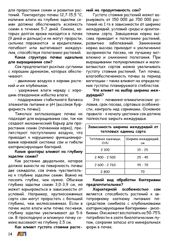 приводит к нарушению функциониро- Тепловые единицы, Ширина междурядий,