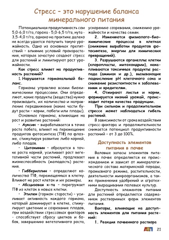при воздействии стрессовых факторов ность элементов для питания расте-