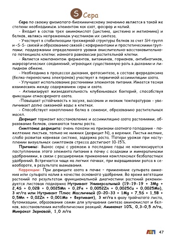 Коррекция: При дефиците азота в почве – применение сульфата аммо-