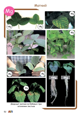 Магний Mg -Mg +Mg -Mg -Mg +Mg -Mg -Mg Дефицит магния на бобовых при затенении листьев 52
