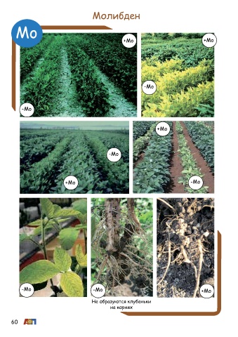Молибден Mo +Mo +Mo -Mo -Mo +Mo -Mo +Mo -Mo -Mo -Mo +Mo Не образуются клубеньки на корнях 60